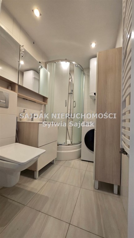 -Łazienka wyposażona w prysznic, bojler, meble łazienkowe,